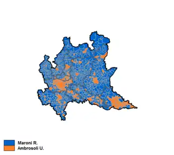 | City | Roberto Maroni | Umberto Ambrosoli | Silvana Carcano | Gabriele Albertini | Carlo Pinardi |