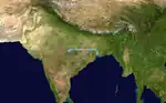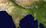 The depression brought heavy rainfall to coastal West Bengal. Kolkata received 206 mm (8.1 in) of rainfall over a span of three days, the wettest spell of the monsoon season, causing flooding. At least four people were reported to have been killed across the state due to rain-related events.[31] The system's precursor low caused authorities to raise cautionary signal number 3, at all maritime ports of Bangladesh.[32] Pachmarhi in Madhya Pradesh received 500 mm (20 in) of rainfall in 72 hours.