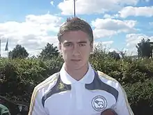 July began with Callum McFadzean joining Burton Albion on a six-month loan deal,[17] and with pre-season training underway, defender Craig Alcock was added to the squad on 15 July.[6] Three days later another defender was added to the squad as Blackpool youngster Harrison McGahey was signed for an undisclosed fee.[18] United kicked off their pre-season fixture list on 19 July but suffered a disappointing 4–0 defeat at Burton Albion with Callum McFadzean, on loan from the Blades, numbering amongst Burton's goal scorers.[19] A trip to Northampton Town the following week earned United a better result as they drew 1–1 with their hosts.[20] On 25 July, George Long joined Oxford United on a six-month loan deal,[21] while the same evening United recorded their first win of pre-season when they beat Scottish Premiership side Dundee 4–2 at Bramall Lane.[22] On 29 July, incumbent Player of the Year, Harry Maguire, was sold to Premier League side Hull City for £2.5 million after months of speculation about his future at Bramall Lane.[23] The same evening the Blades suffered a narrow 1–0 home defeat at the hands of Huddersfield Town in the latest of their pre-season friendlies.[24] Two days later United beat Turkish Süper Lig champions Fenerbahçe 2–1 in a charity friendly in aid of the Soma mine disaster,[25] before completing their pre-season fixture list with a 2–0 loss to York City at Bootham Crescent on 2 August 2014.[26] With the start of the new season imminent, on 4 August United signed experienced striker Michael Higdon from Dutch side N.E.C. Nijmegen for an undisclosed fee on a two-year contract.[16]