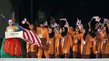 Malaysia athletes entering the stadium with squash legend, Nicol David carrying the Flag