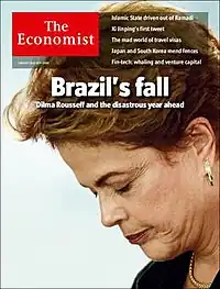 - ↑ "Capa da 'Economist' alerta para queda do Brasil e prevê desastre em 2016". O Globo. 30 December 2015. Retrieved 30 June 2017.