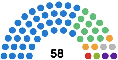 Last election 39 seats, 46.0% 12 seats, 17.0% 4 seats, 13.0%
