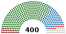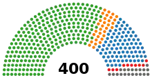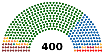 South Africa has a parliamentary system of government; the National Assembly consists of 400 members elected by proportional representation with a closed list approach. Two hundred members are elected from national party lists; the other 200 are elected from provincial party lists in each of the nine provinces.[5] The President of South Africa was chosen by the National Assembly after the election.[6]
