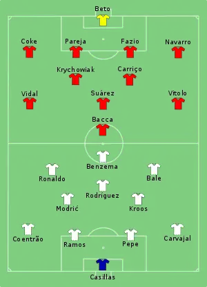 - 1 2 3 "Tactical line-ups – Final – Tuesday 12 August 2014 Cardiff City Stadium – Cardiff" (PDF). UEFA.org. Union of European Football Associations. 12 August 2014. Retrieved 12 August 2014.