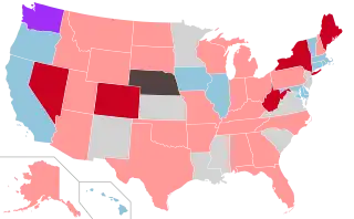 ![]() Map of lower house elections: Democrats retained control Republicans gained control Republicans retained control Non-partisan legislature No regularly-scheduled elections | |||||||||||||||||||||