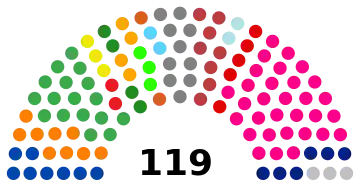 Members of the Chamber of Deputies are elected in single-member constituencies using the two-round system; a second round being held if no candidate in a constituency wins a majority of the vote in the first round.[6] In March 2015 an electoral decree increased the number of members in the new Chamber of Deputies from 99 to 118, with the Senate retaining the 30 members.[7] On 13 March, President Martelly issued a decree that split the Cerca La Source in two constituencies, and therefore increasing the number of deputies to 119.[8]