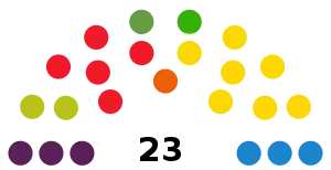 The following table lists party control in the Island Cabildos.[1] Gains for a party are displayed with the cell's background shaded in that party's colour.