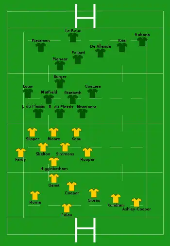 18. "Springbok squad for Brisbane confirmed". South African Rugby Union. 12 July 2015. Archived from the original on 9 June 2016. Retrieved 9 June 2016.
