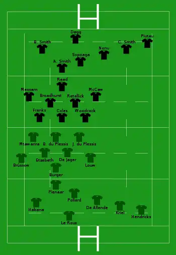 20. "Eight changes for Springboks against New Zealand". South African Rugby Union. 22 July 2015. Retrieved 22 July 2015.