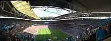 On 14 January Arsenal went to South Wales for the next Premier League match and won 4–0 at Swansea. Olivier Giroud scored his fifth goal in five matches, followed by own goals by Jack Cork and Kyle Naughton, before the fourth goal was fired home by Alexis Sánchez.[56] Eight days later Arsenal faced Burnley at the Emirates. Following a goalless first half, Shkodran Mustafi scored his first Arsenal goal, heading home from a corner on 59 minutes. Granit Xhaka was then unusually sent off by referee Jonathan Moss and in stoppage time it got much more dramatic: in the 93rd minute Burnley were awarded a penalty through which Andre Gray scored. A cruel hammer blow for Arsenal meant that it was destined for the visitors to bring back a point but then in the 97th minute the Gunners themselves were handed a penalty despite an offside appeal. Sánchez scored from the spot in the final minute of stoppage time to keep the three points in North London. The match moreover saw Arsène Wenger get sent off for complaining to the fourth official about the Burnley penalty decision. For this offense Wenger was given a domestic four match ban which made him sit on the 'naughty step' and watch assistant manager Steve Bould do the touchline duties for the next four matches.[57] On 28 January, Arsenal played in the FA Cup fourth round at Southampton. A brace by Danny Welbeck and a hat trick by Theo Walcott made them cruise into the fifth round with a comfortable 5-0 win.[58] Two days later Arsenal continued the Premier League campaign but they suffered a shock 2–1 home defeat by Watford. Former Tottenham defender Younès Kaboul gave the visitors the lead through a deflected strike from outside the box early in the first half and three minutes later Troy Deeney doubled Watford's advantage. In the second half Arsenal were back into it as Alex Iwobi gave the Gunners hope. Arsenal piled on the pressure for the remaining minutes and Lucas Pérez hit the bar but they were unable to get the equaliser. The match ended 2–1 to Watford as the month of January ended harshly for the Gunners.[59]
