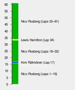 Nico Rosberg started the race from pole position[4] and led throughout, holding off a late challenge by Daniel Ricciardo to win by less than half a second in his 200th race in Formula One. Sebastian Vettel was awarded the Driver of the Day award after moving 17 spots to claim 5th position.[5]
