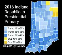 - ↑ "RealClearPolitics - Election 2016 - Indiana: Trump vs. Clinton".