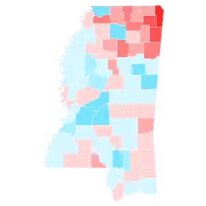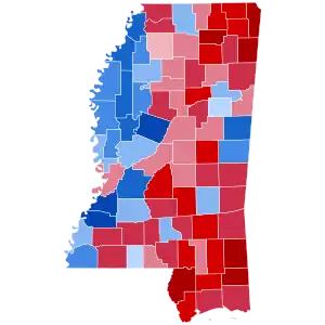 Mississippi has not voted Democratic since 1976. Since that time, Republicans have dominated the state's political elections, and so Trump was widely expected to win the state. Indeed, Trump carried it with 57.86% of the vote, while Clinton received 40.06%.[2] Trump's 17.80% margin of victory was a 6.30% increase over the 11.50% margin of victory by which Republican nominee Mitt Romney won the state over Barack Obama in 2012. This also marked the first time since 1988 that Madison County voted more Democratic than the state as a whole. Trump became the first Republican to win the White House without carrying Oktibbeha County since Richard Nixon in 1968, as well as the first to do so without carrying Copiah, Pike, or Yazoo Counties since Ronald Reagan in 1980.