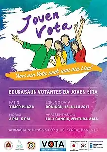 16. 1 2 3 "Timor-Leste/Eleições: Da euforia da campanha à calma da reflexão, sem cartazes". www.dn.pt (in European Portuguese). 20 July 2017. Retrieved 2023-01-30.