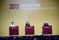 - ↑ "Three Hong Kong chief executive candidates to spar in media debate". South China Morning Post. 14 March 2017.