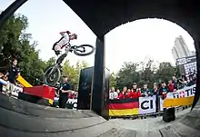 ![]() Abel Mustieles competing in the final of the men's 20" trials competition in Chengdu | |