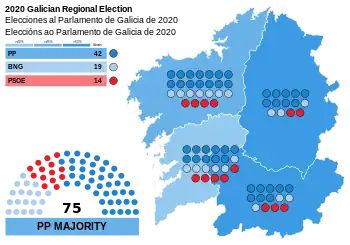 The 2020 Galician regional election was on Sunday, 12 July 2020, to elect the 11th Parliament of the autonomous community of Galicia.[1] All 75 seats in the Parliament were up for election. The election was initially scheduled for 5 April 2020 but was postponed as a result of the COVID-19 pandemic.[2] It was held simultaneously with a regional election in the Basque Country.