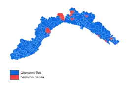 The result of the election was an absolute win of the incumbent President of Liguria, Giovanni Toti.[3]
