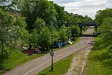 In early April 2020, several people experiencing homelessness took up residence at a small encampment of about a dozen tents in Minneapolis under the Martin Olav Sabo Bridge, near Hiawatha Avenue and the Midtown Greenway bike and pedestrian trail. The encampment garnered the nickname "camp quarantine"[37][6] as residents felt safer from the coronavirus by living outside on public property than staying in crowded shelters,[38] and they preferred to hang around the camps as the places they had previously visited during the day, such as libraries and public buildings, were closed under the state's public health mitigation of COVID-19.[38]