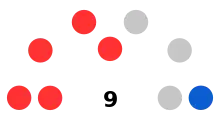 | Republican | 13 | 9 | 4 | 45.00% | |