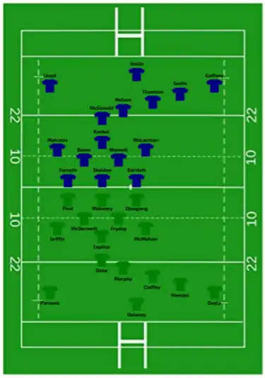 | 18:30 IST (UTC+01:00) | Try: Peat 36' c Molloy 40' +1 c Penalty try 70' Con: Tyrrell (2/2) 37', 40' +2 |