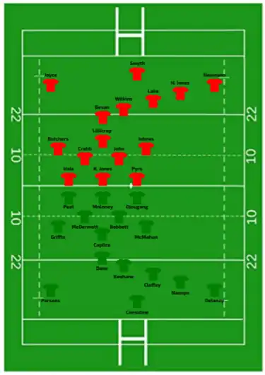 - ↑ Duffy, Emma (9 February 2020). "Five-try Ireland get the better of Wales and Storm Ciara to go two from two in Six Nations". The 42. Retrieved 9 May 2021.