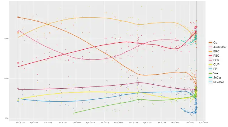 | Cs | ERC | JxCat | PSC | PDeCAT | ECP | CUP | PP | Vox | Audience | Ref. | |||