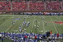 The 2021 SMU Mustangs football team represented Southern Methodist University during the 2021 NCAA Division I FBS football season. The Mustangs played their home games at Gerald J. Ford Stadium in University Park, Texas, a separate city within the city limits of Dallas, competed as members of the American Athletic Conference (AAC). The Mustangs were led by fourth-year coach Sonny Dykes—on November 29, it was announced that Dykes would leave the program to become the head coach at TCU.[1] He finished at SMU with an overall record of 30–18.