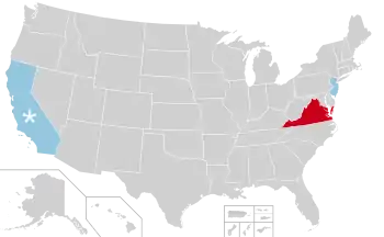 In Virginia, term-limited incumbent Ralph Northam was succeeded by Republican businessman Glenn Youngkin. In New Jersey, incumbent Phil Murphy won re-election. In California, an unsuccessful special election to recall incumbent Gavin Newsom was held on September 14, 2021.[1][2]