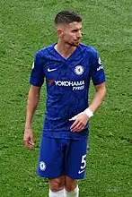 On transfer deadline day, 31 January, the Gunners announced that 31-year-old Italian midfielder Jorginho had joined the club from Premier League side Chelsea and would wear the number 20 shirt.[299][300] Jorginho had made 143 Premier League appearances for Chelsea, winning the UEFA Europa League, UEFA Champions League, UEFA Super Cup and FIFA Club World Cup during his time at the club. Capped 46 times, he was part of the Italy squad which won UEFA Euro 2020.[299][300] In 2021, he was named UEFA Men's Player of the Year and placed third in the Ballon d'Or.[301][302]
