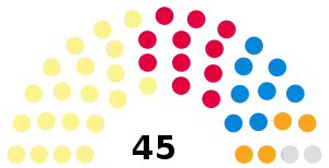 Last election 11 seats, 25.0% 4 seats, 15.4%