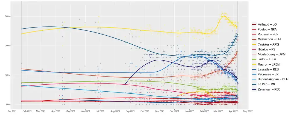 77. "POLITICO Poll of Polls — French polls, trends and election news for France". POLITICO. Archived from the original on 1 February 2022. Retrieved 1 February 2022.