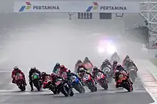 The Indonesian Grand Prix returned to the championship calendar after an absence of 25 years at the new Pertamina Mandalika International Street Circuit in Central Lombok. On the Wednesday prior to race weekend, 20 MotoGP class riders met with Indonesian President Joko Widodo at the Merdeka Palace, then paraded through Jakarta streets on race machines, together with the President who rode a road machine. Roads were closed for the occasion, and fans lined the streets.[1][3]