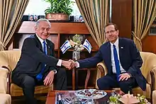 - ↑ Lieber, Dov (13 November 2022). "Israeli President Hands Mandate to Benjamin Netanyahu to Form Government". The Wall Street Journal. Retrieved 13 November 2022.