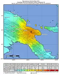 - 1 2 "EASTERN NEW GUINEA REG., P.N.G. 2022/09/10 23:46:55 UTC, Mw=7.7". GEOSCOPE Observatory. 10 September 2022. Archived from the original on 11 September 2022. Retrieved 11 September 2022.
