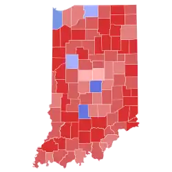 - ↑ Republican Connie Lawson won with 56.2% of the vote in 2018, but resigned on February 15, 2021.
