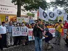 The Patriot Alliance Association protesting opposite the Grand Hyatt Taipei