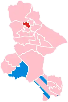 ![]() Map of the results of the election. Colours denote the winning party, as shown in the main table of results. | ||||||||||||||||||||||||||||||||