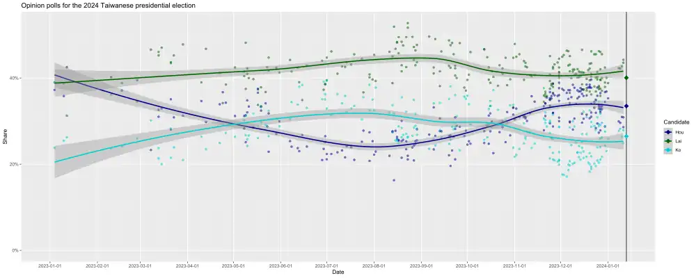 - ↑ "Taiwan presidential contender Lai takes big lead in opinion polls". Nikkei Asia. Archived from the original on 10 November 2023. Retrieved 10 November 2023.