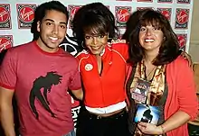 "Design Me" cover contest winner Matthew Zeghibe with Jackson and a guest at the release of 20 Y.O. in the Virgin Megastore in New York City in 2006