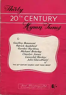 The 20th Century Church Light Music Group was set up at the end of the 1950s by a number of British musicians who felt that church music was increasingly out of touch with modern society.[1][2][3][4] These included Geoffrey Beaumont, Patrick Appleford, Gordon Hartless and Michael Brierley. According to Appleford, they sought 'a musical lingua franca or “folk” music in the sense of ordinary folk’s music rather than that 'of the pop music industry'.[5] The group published numerous hymns and recordings between 1960 and 1965, and had a significant influence on church music.