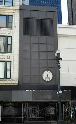A. Weis & Company operated the Winter Garden, an upscale restaurant located in the basements of 214 South State Street and the adjacent Consumers Building.[8][12][13][14] Another tenant in this era was the Economy Hat Bleachery.[9] In 1923, Truly Warner began renting first, second, and third floors for a hat shop.[11] The building was also home to a Harmony Cafeteria in the 1920s and 1930s.[15][16] In 1946, Martin Jewelers began renting the building, replacing the Newart Company, a clothing retailer.[17][18] Martin Jewelers had the building remodeled, with Isadore E. Alexander redesigning the first floor storefront in the Streamline Moderne style.[17][19][1] The building was later home to Roberto's, a men's wear shop.[20]