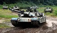 K1 tanks belonging to the 2nd Armored Brigade are conducting exercise in the area of Mugun-ri, Paju, Gyeonggi.