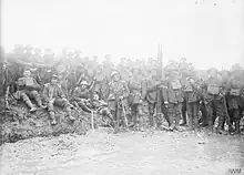 Group of Tommies of the 2nd Battalion, Manchester Regiment, part of the 32nd Division, after the advance on the Ancre, possibly around Serre, January 1917.