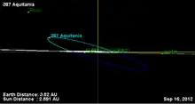 - 1 2 3 4 5 6 7 8 9 "JPL Small-Body Database Browser: 387 Aquitania (1894 AZ)" (2017-09-30 last obs.). Jet Propulsion Laboratory. Archived from the original on 16 September 2020. Retrieved 19 October 2017.