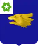 • Shield: Azure, the head of a wolverine erased Or; on a canton Argent a six-bastioned fort Vert charged with a mullet of the third (for the 36th Infantry).