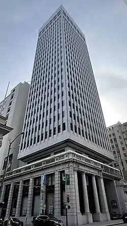 The modern tower retains the classic temple facades at its base.[4] Preserving the two landmark facades took advantage of a new, and at times controversial, urban design precedent as illustrated by other similar projects such as 353 Sacramento and One Sansome Streets. All three of these projects serve to varying degrees of success as examples of a design strategy intended to resolve conflicts between the architectural preservation and development communities.[5]