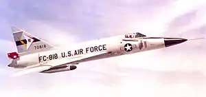 The second wing provided interceptor combat crew training for McDonnell F-101 Voodoo and Convair F-106 Delta Dart aircrews, interceptor aircraft weapons training, and conducted operational testing and evaluation of manned interceptors, fire-control systems, and armament.[4] The wing was ADC's only unit conducting live firing and operating target control systems after the 4750th Air Defense Wing at Vincent Air Force Base, Arizona was discontinued.[4]
