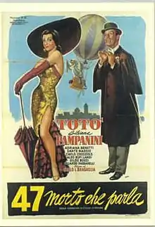 47 morto che parla is a 1950 Italian comedy film directed by Carlo Ludovico Bragaglia. The film stars Totò and Silvana Pampanini. The plot tells about Antonio Peletti (Totò), a widower and very frugal baron who falls in love with a girl, Rosetta, who works in a local. But his son Gastone too is in love with her: to marry Rosetta and to build a family of his own, he asks his father the heritage who his grand-father left. The baron denies he'd have the inheritance and, out of his temper, drives his son out of their home. Rosetta follows the son. After a series of awesome cirumstances, Gastone and Rosetta happily marry. The surly baron too will find a way to soften his hearth. An extraordonary Antonio De Curtis (the real name of Totò) shows another time he was not only an artist of 'Rivista' (a kind of show which took place in Italy in the early years of the past Century) but also a good actor of Cinema. As nearly always in the movies he performed, he makes what he wants. The public, nevertheless, agrees with him: his movies were nearly always watched by millions of Italians. Who, after the tragedy of the Second World War, had just the need to smile. The director of this movie is Carlo Ludovico Bragaglia, two other actors to mention are the beautiful and capable Silvana Pampanini and the hilarious Carlo Croccolo.