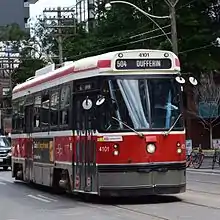 The 514 Cherry was a streetcar route of the Toronto streetcar system in Toronto, Ontario, Canada, that operated from June 19, 2016,[1][2] until October 7, 2018.[3] The 514 operated through the financial district and downtown Toronto between Dufferin Gate Loop and the Distillery Loop.[1] It used to supplement with the 504 King service along King Street, specifically to the dense residential areas in Liberty Village,[4] the Canary District and the Distillery District. The City of Toronto's "King Street Visioning Study" proposed a transit and pedestrian corridor through which this route would operate.[5]